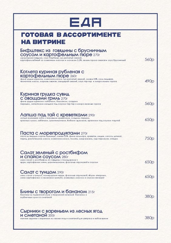 У нас есть возможность подключиться к Wi-Fi, организован бизнес-ланч, готовы организовать гастрономическую сторону любого события (кейтеринг), производится доставка блюд в офис или на дом - всё к вашим услугам. Кроме того, здесь вы можете весело провести время за настольными играми.